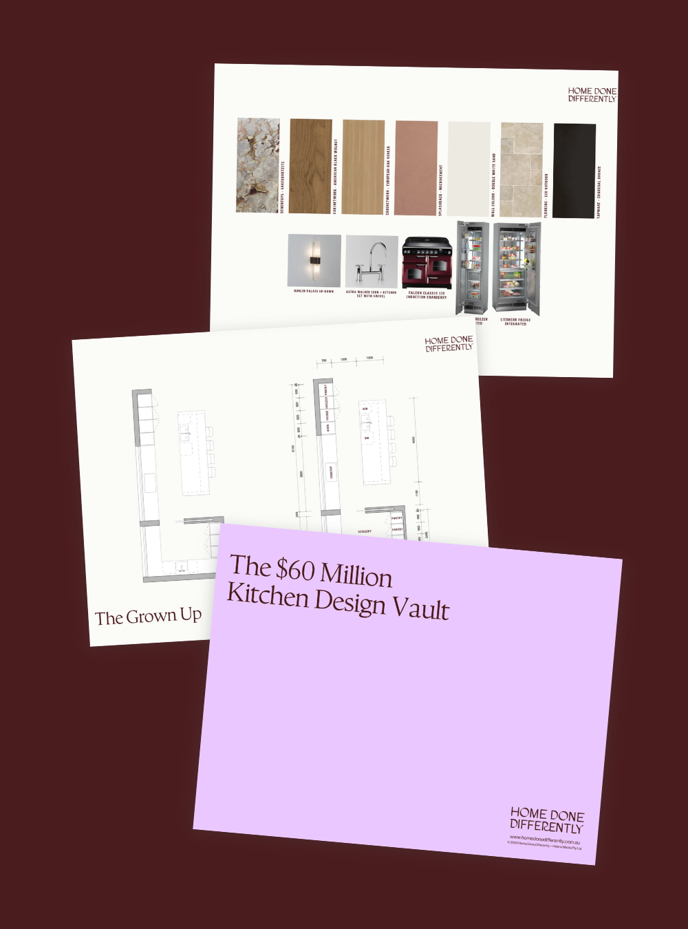 13 real life designer kitchens - the floor plans, dimensions, video walkthroughs and the design logic behind them - so you can instantly spot what’s wrong with your kitchen (and how to fix it) before it becomes an expensive mistake.